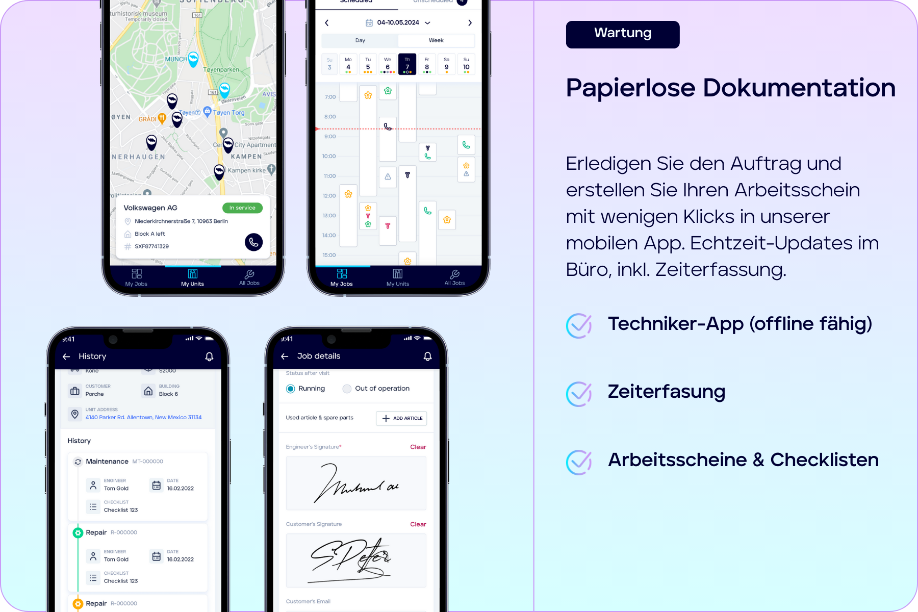 Mainteny ist eine All-in-One-Software, die darauf ausgelegt ist, Ihre WartungsbetriebsablĂ€ufe zu optimieren. Sie umfasst Funktionen wie Angebote, Rechnungen, eine mobile App fĂŒr Techniker, Checklisten, Vertragsverwaltung und mehr. Reduzieren Sie den Papierkram, erledigen Sie mehr AuftrĂ€ge und halten Sie Ihre Kunden zufrieden.